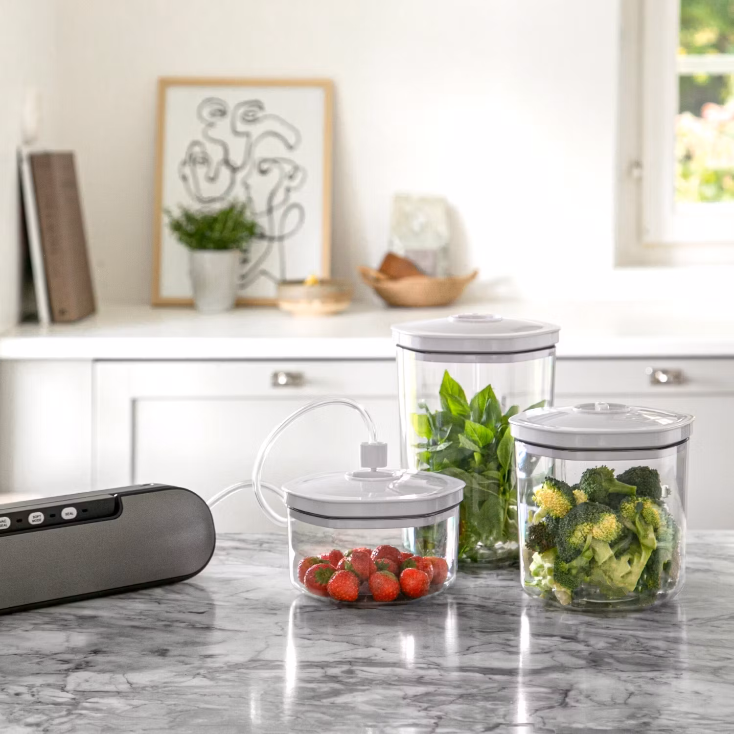 Champions vakuumbehållare förlänger matens hållbarhet upp till fem gånger. I behållarna förpackar du enkelt ömtåliga eller flytande livsmedel så som t.ex. soppor, såser, frukt eller grönsaker. De går utmärkt att värma i mikrovågsugn och tål maskindisk. Använd Champions vakuumbehållare för att marinera t.ex. kött eller kyckling. På endast 15–60 min uppnås samma effekt som traditionell marinering åstadkommer på flera timmar.