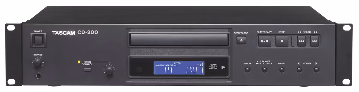 CD-200 erbjuder en enkel, kostnadseffektiv lösning på installationer eller PA-uthyrning där extrafunktionerna för en mer komplex CD-spelare inte behövs. CD-200 erbjuder trots sin enkelhet ändå funktioner som tonhöjdskontroll vred, en hörlursutgång med volymkontroll, introkontroll, skakminne och en mängd olika praktiska uppspelningslägen som kan hjälpa till att förhindra att användaren gör ett misstag. CD-200 kan också spela upp MP3- och WAV-filer från data-CD-skivor och visa ID3-taggar och CD-text. Den medföljande trådlösa fjärrkontrollen ger tillgång till de flesta funktioner och gör det möjligt att välja ett spår direkt via en 10-knappsats.