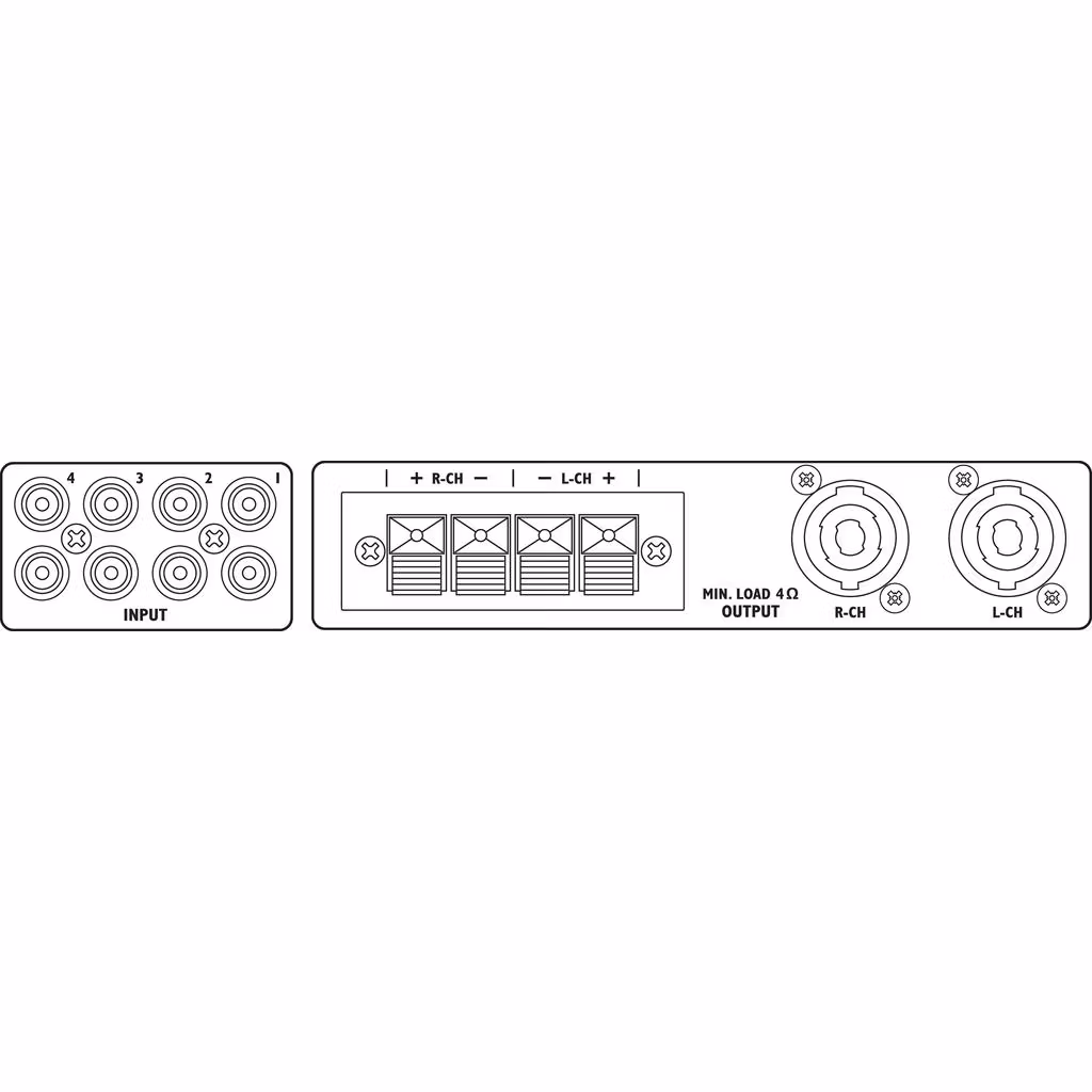 | Connections | 1 x 3.5 mm stereo jack4 x RCA L/R 1 x SPEAKER L/R 1 x spring-load. speaker term. L/R |