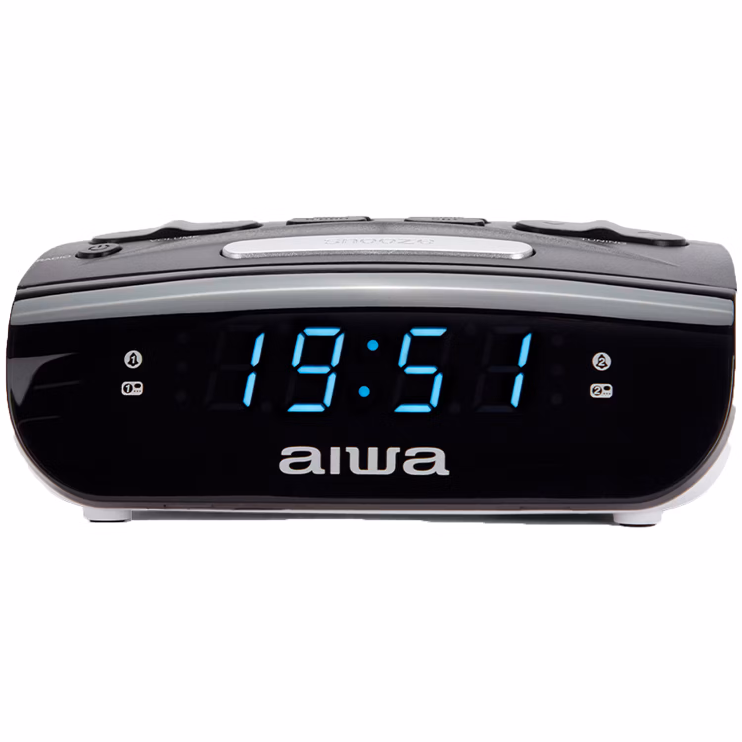 AIWA CR-15 klockradio har en kompakt design med en 0,6-tums vit LED-skärm. Den innehåller en MW/FM PLL-tuner med 20 förinställningar och ett dubbelt larm med snooze- och vilofunktioner.
