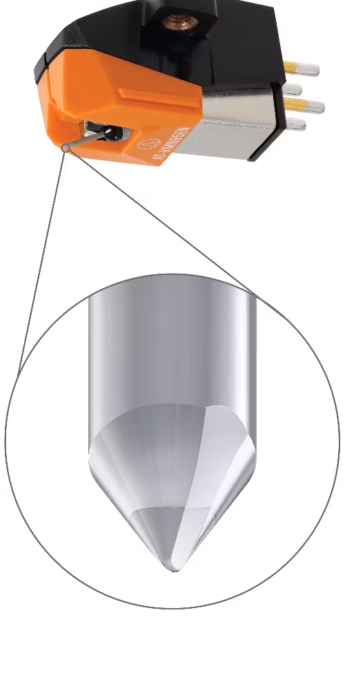 AT-VM95EN Audio-Technica AT-VM95EN, VM95-serien naken elliptisk pickup AT-VM95EN har en naken elliptisk diamant. Konstruktionen av stiftet är en i ett stycke diamant med ett runt skaft insatt i nålarmen skapar ett lättare och styvare transmissionssystem än en diamantspets monterad på ett runt titanarm såsom i AT-VM95E. Även användningen av naken diamant innebär en väsentlig skillnad i prissättningen, men kvaliteten på reproduktionen kommer omedelbart att märkas, särskilt i trovärdigheten för högfrekvenser och i kvaliteten hos transientsvaren.