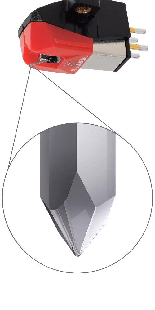 AT-VM95ML Audio-Technica, AT-VM95ML, VM95 serien Microlinear stereo pickup AT-VM95ML, har en naken Microlinear diamantnål, inte bara Microlinear slipningen av nålen kommer att tillåta att fördubbla längden på nålen. Prestandan hos en linjekontakt-nål minimerar "inre spårförvrängning", såväl som att den ger förlängd frekvensrespons och maximerar upplösningen i audioprogrammets mellan och höga frekvenser.