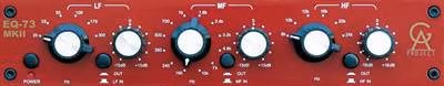 The MKII has an IC based in-and output section with balanced connections for self contained operation and new knobs for the level controls. The class-A circuit used in the EQ-73 MKII is similar to the eq section in the classical 1073 module, without the high pass filter. Additional frequencies have been added and the mid frequency band uses two inductors, the higher value of the second one is used for the two lowest frequencies, 160 Hz and 240 Hz, to achieve a suitable response. The sound character is warm, punchy, sweet and musical. These classic characteristics have been heard on countless recordings through the years and it is a versatile sound that works very well on most sound sources and in most genres. The essence of this sound is now available at a surprisingly low cost, making it available to nearly everyone.