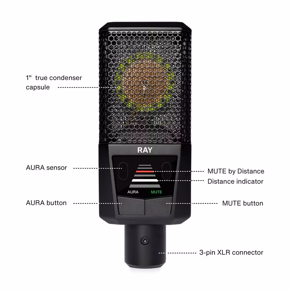 Med banbrytande AURA-teknik och funktionen “Mute by Distance” förändrar RAY hur vi interagerar med en mikrofon. Med sitt "Record-Ready" ljud blir röstinspelningar för poddar, streaming, content creation och musikproduktion enklare än någonsin.