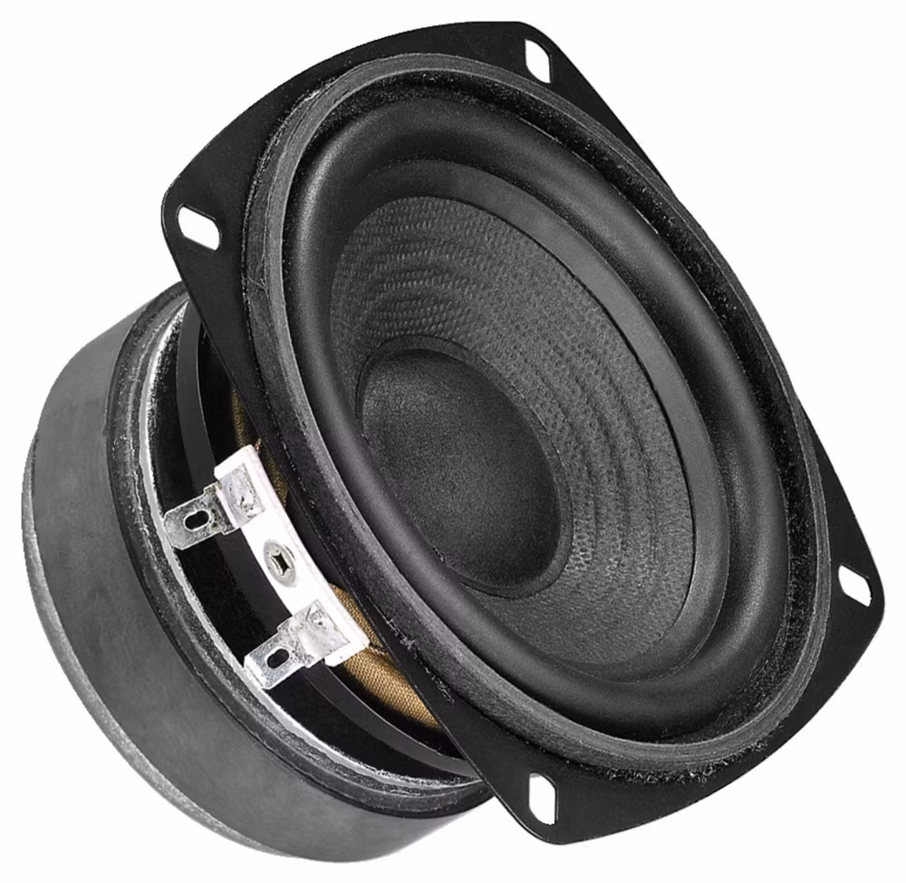 Hi-fi bas-mellanregisterhögtalare, 60 WMAX, 30 WRMS, 8 Ohm Robust papperskon Högkvalitativ aluminiumspole Borrad polkärna Omfattning av gumm