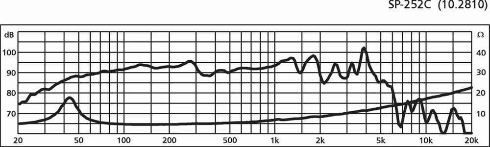 Bestruken papperskon med förstärkta ringar och lång utflyktsomfattning av speciell design. Magnetiska system med hög drivkraft och långt utskjutande nedre polplatta säkerställer en exceptionellt hög utskjutning i enlighet därmed.