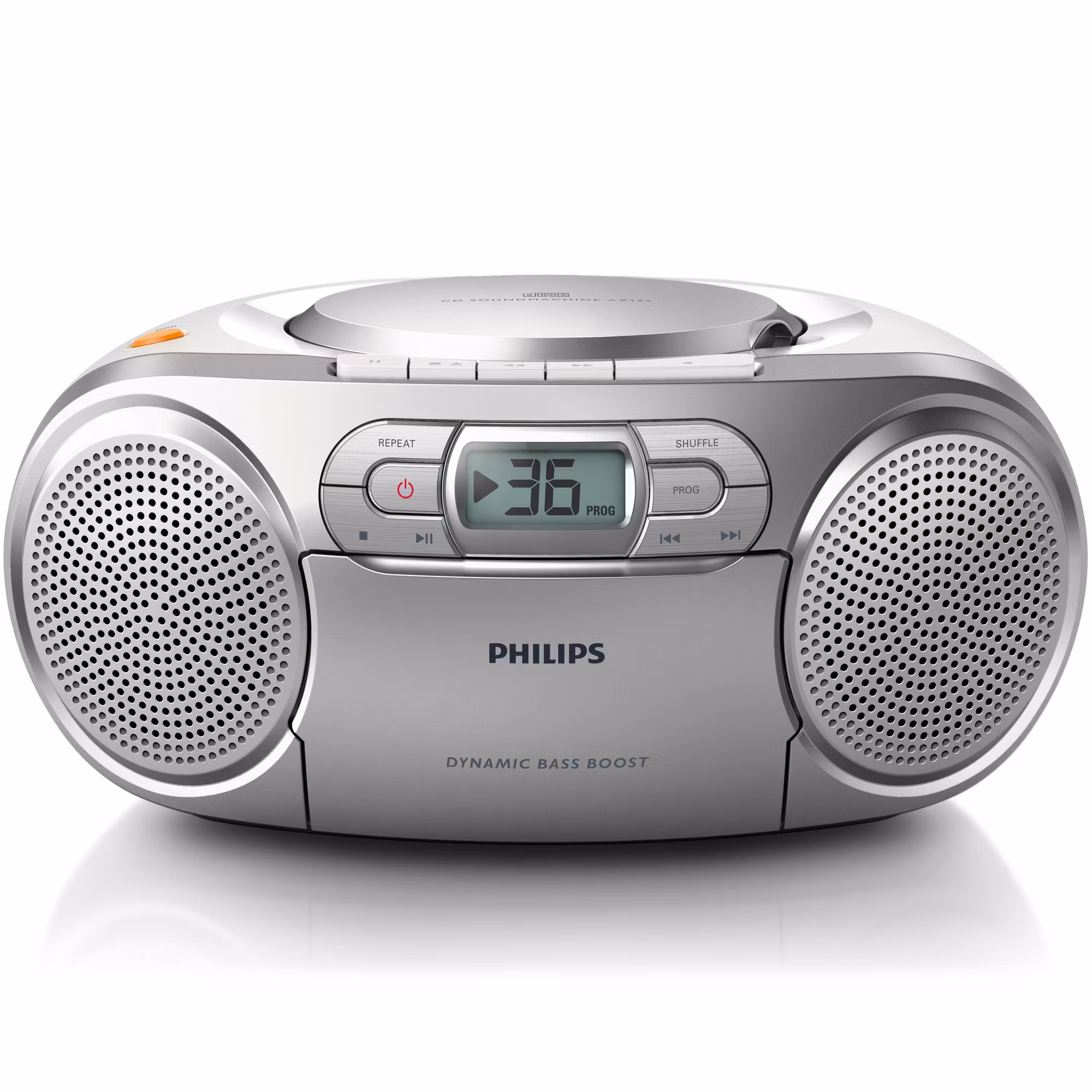Philips AZ127 Boombox CD/FM-radio/Kassett Silver-grå