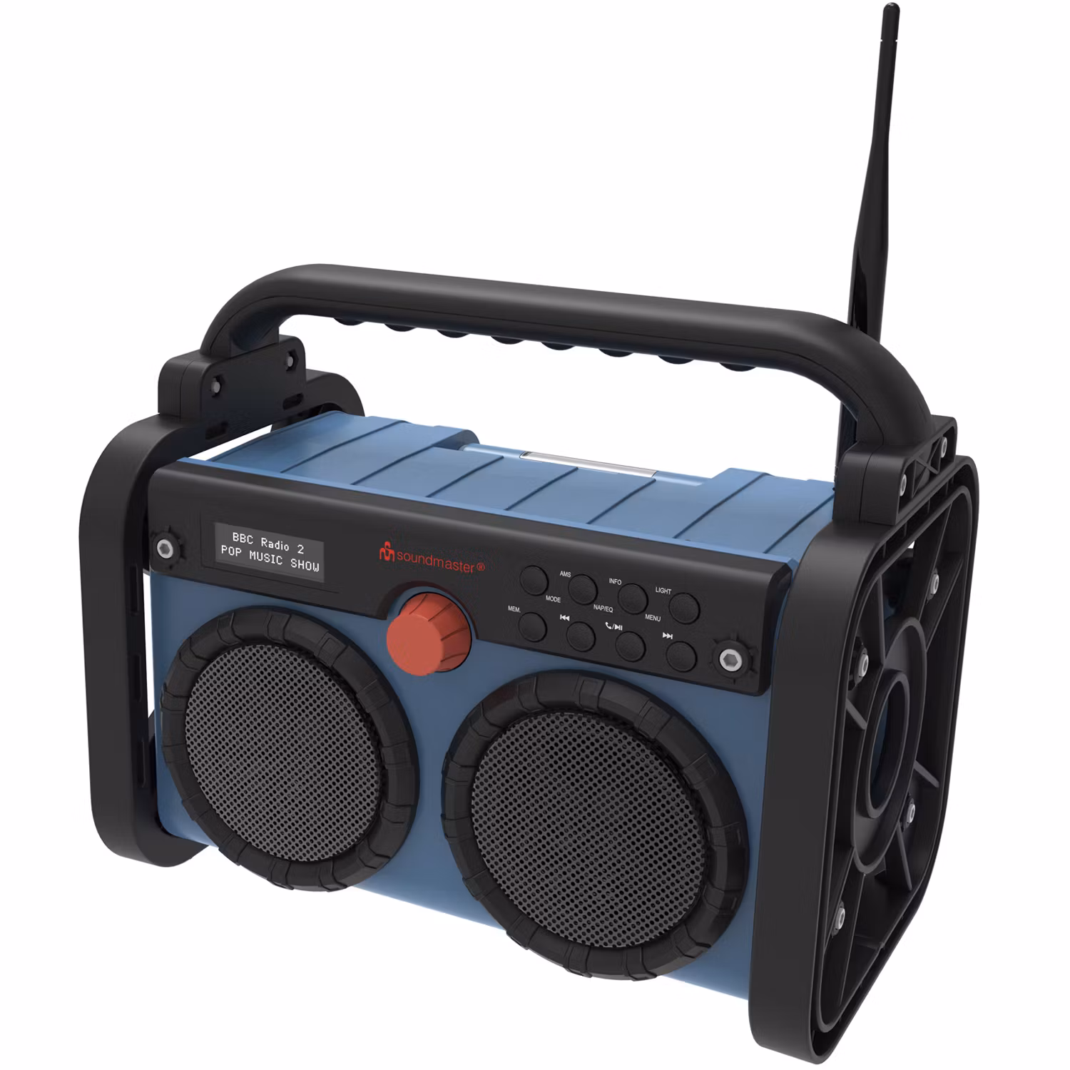 Soundmaster DAB85BL Stereo DAB+/FM bygg/trädgårds-radio med Bluetooth®, LED-belysning & Li-Ion batteri