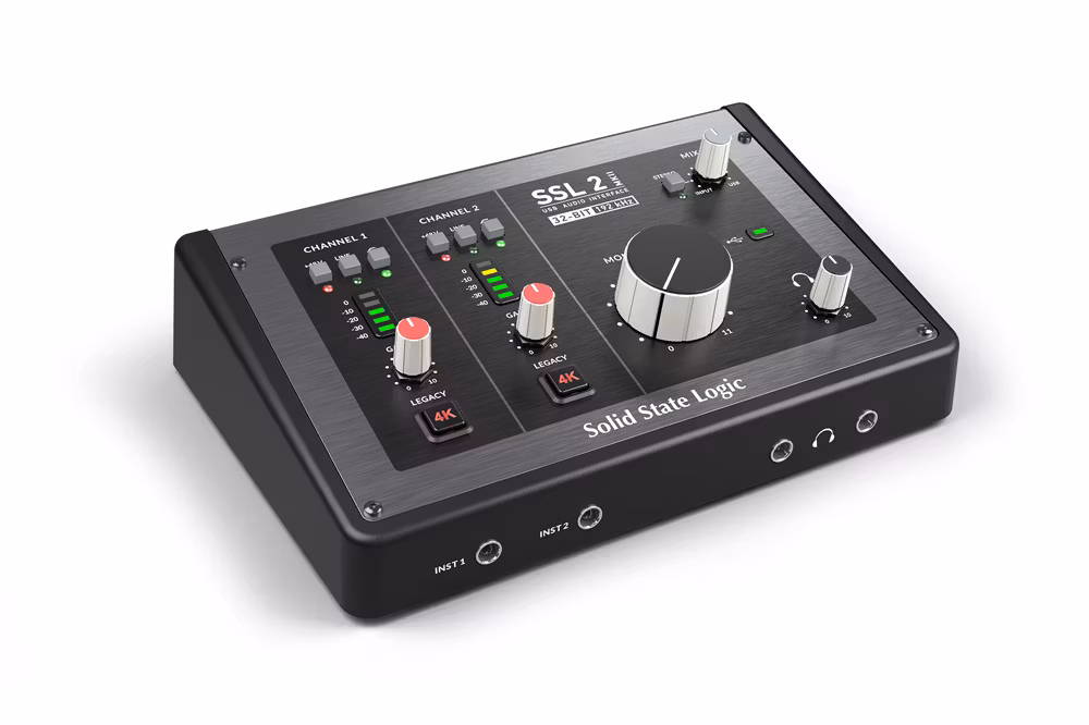 - 2 x SSL-mikrofonförförstärkare med dedikerat högpassfilter, linjeingång och 48V fantommatning.